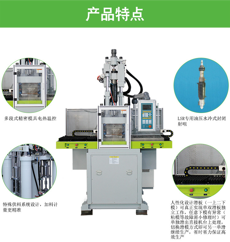 85噸立式液態矽(guī)膠射出成型機的產品特(tè)點: