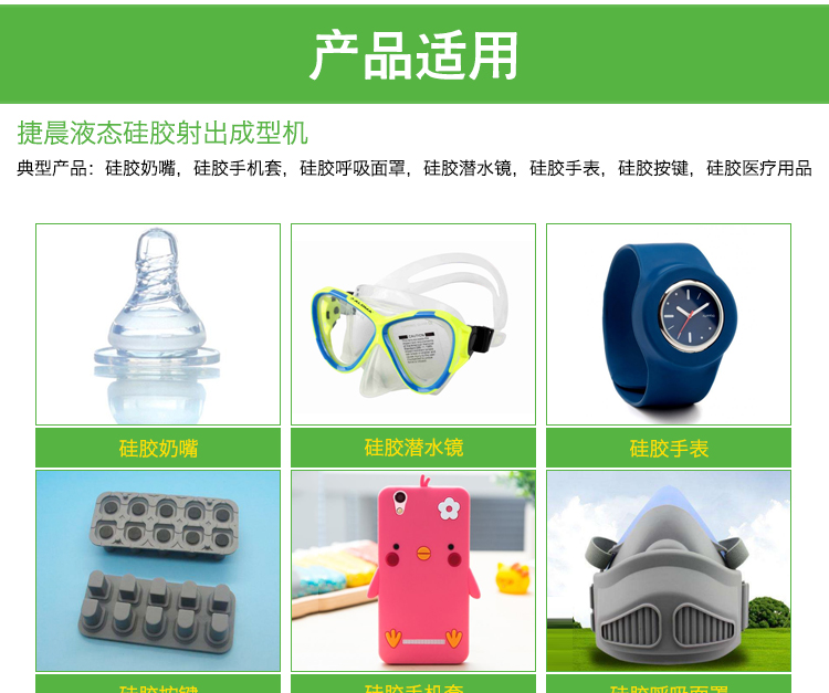 典型產品:矽膠奶嘴,矽膠(jiāo)手機套,矽膠呼吸麵罩,矽膠潛水鏡,矽膠手表,矽膠按鍵,矽膠醫療用品
